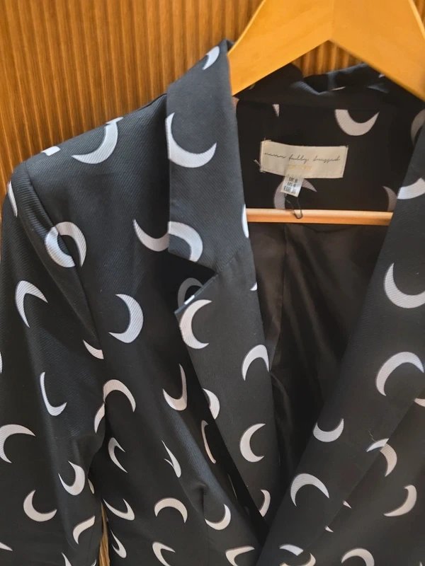 The Never Fully Dressed Black Half Crescent Moons Blazer is available in sizes S.