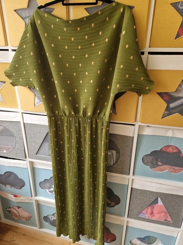 Olive Green One-Shoulder Plisse Dress — the must-have occasion dress for wedding guests, evening events, dinner parties. Designed in vibrant olive green, this full-length dress features one-shoulder neckline, gold fleck detailing, and an elasticated waist. Crafted from stretchy, comfortable material, it offers a flattering fit. Includes a full-length jersey slip lining for comfort and coverage.