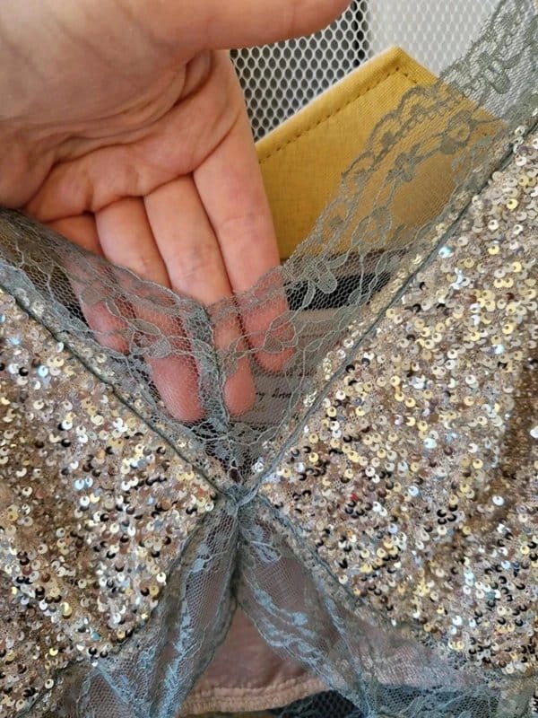 The Never Fully Dressed Silver Sequin Mini Dress with Cut-out Lace is made from sequins, lace.