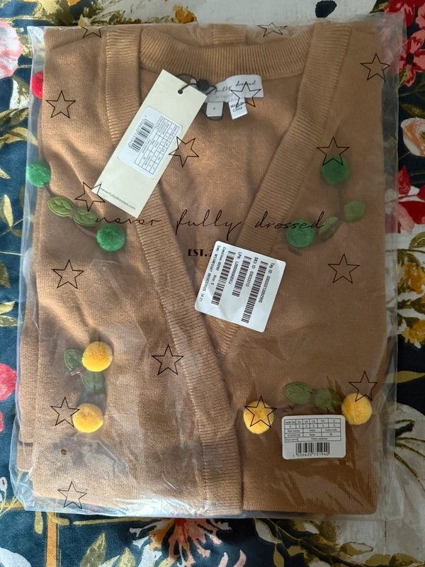 The Never Fully Dressed Brown Cardigan is available in sizes S.