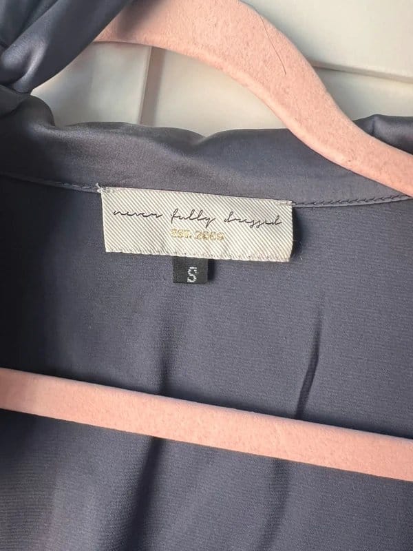 The Never Fully Dressed Grey Satin Shirt With Neck Tie Size S is made from satin.
