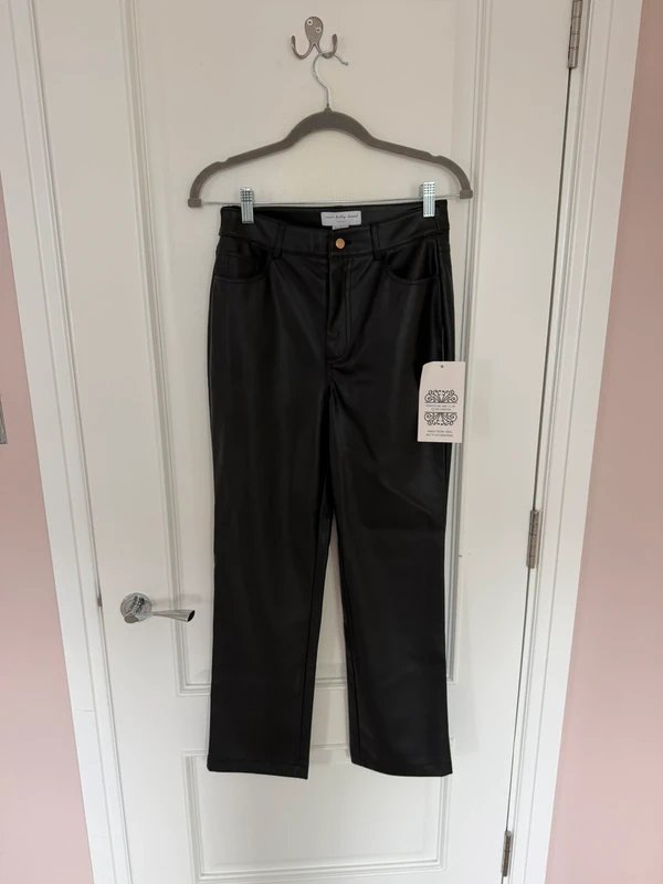 The Never Fully Dressed Black Leather Trousers is available in sizes S.