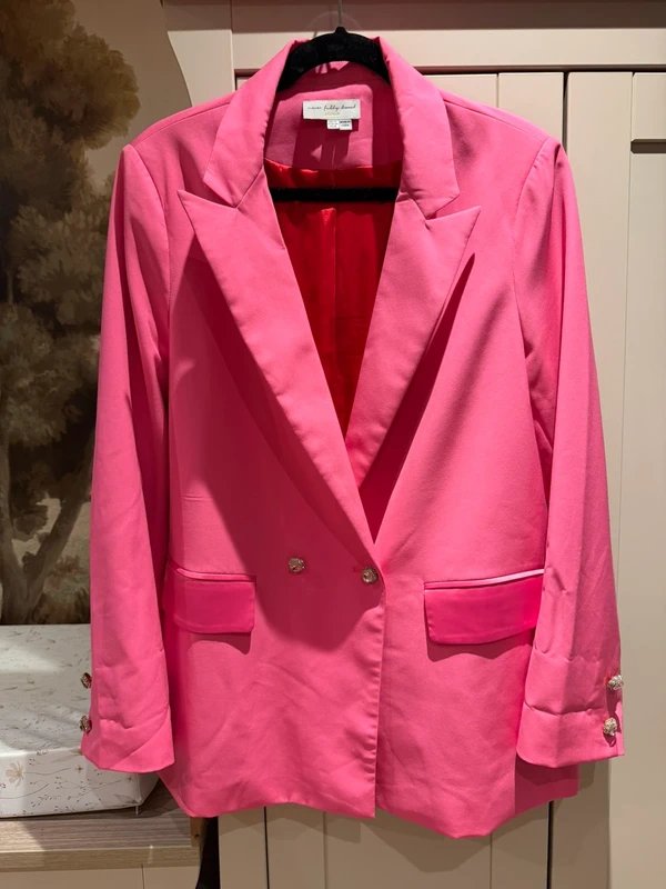 The Never Fully Dressed Hot Pink Blazer is available in sizes M.