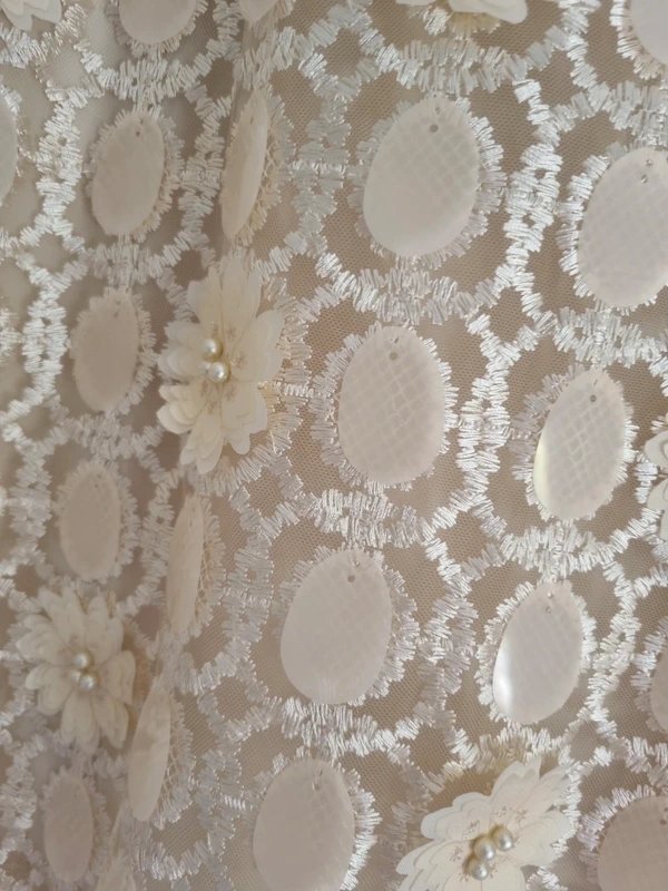 The Never Fully Dressed Sequin Mini Dress in Cream is available in sizes L.