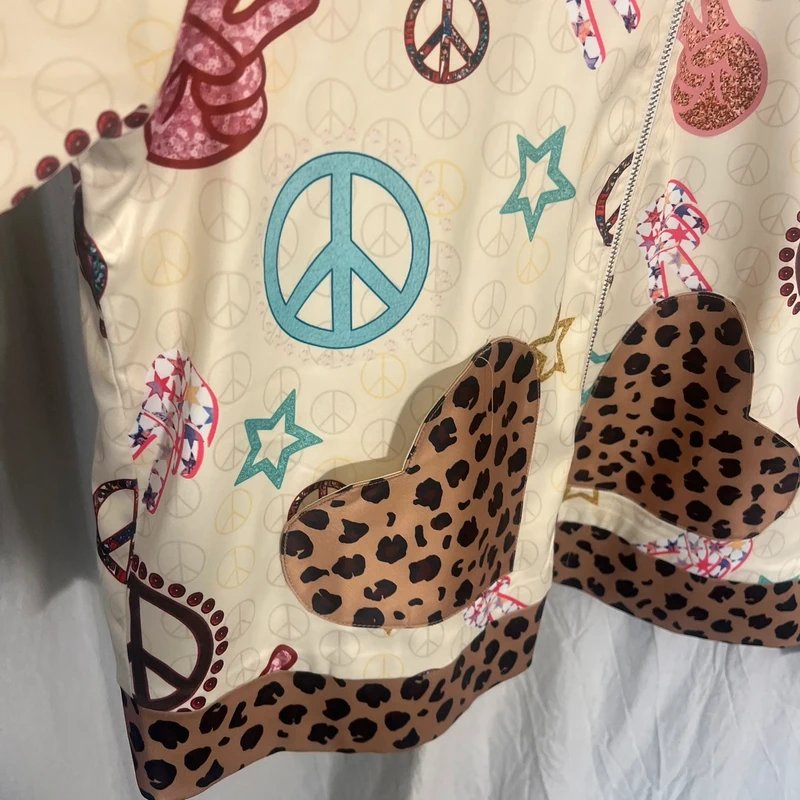 The Never Fully Dressed Peace Leopard Satin Bomber Jacket is ideal for casual.