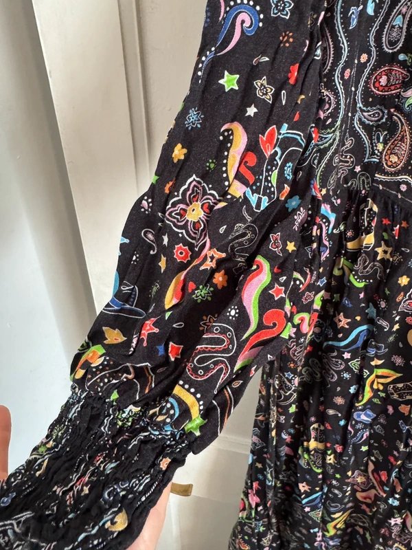 The Stunning Dolly Dress from Never Fully Dressed features an insanely cool 🤠 🐍 ✨ floral print. This floaty and comfy piece is perfect for spring 🌸. It's a versatile addition to any wardrobe.
