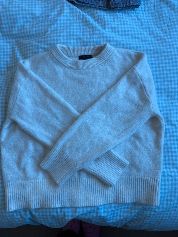 This off white jumper from New Look features a cozy, crew neck and long sleeves. Perfect for layering during cooler months.