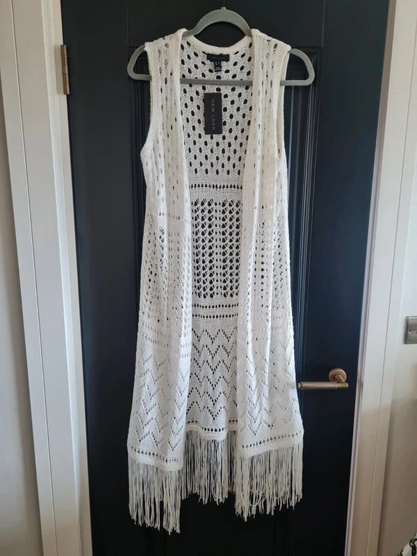 This cream crochet beach cover up by New Look features a midi length and a bohemian design. Perfect for beach outings or casual summer wear.
