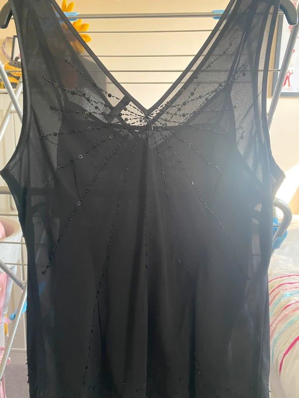 The New Look Sleeveless Sequined Blouse in Black is available in sizes L.