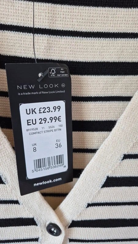 The New Look Cream and Black Stripe Waistcoat Top, Size 10 is made from cotton, polyester.