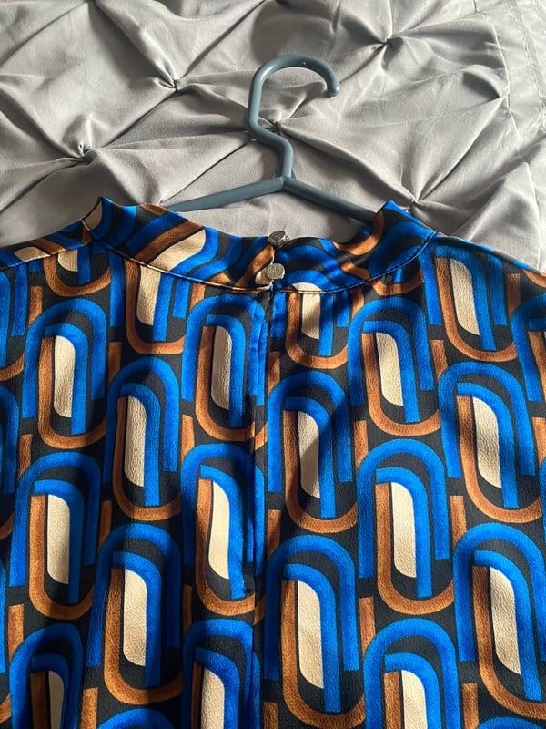 The New Look Blue & Black Patterned Party Dress is available in sizes L.