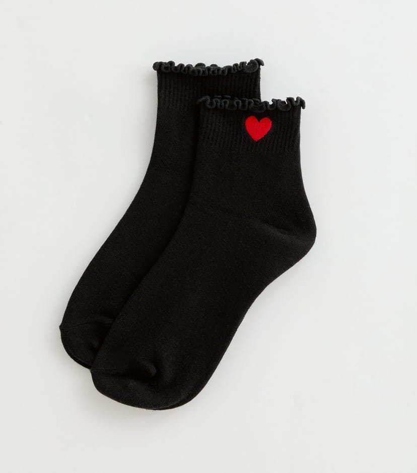 The New Look Black Embroidered Heart Frill Ankle Socks is available in sizes one size.