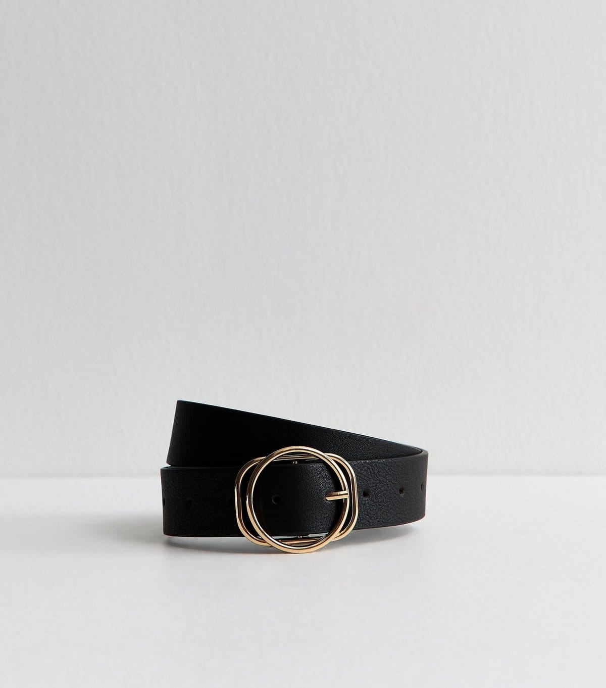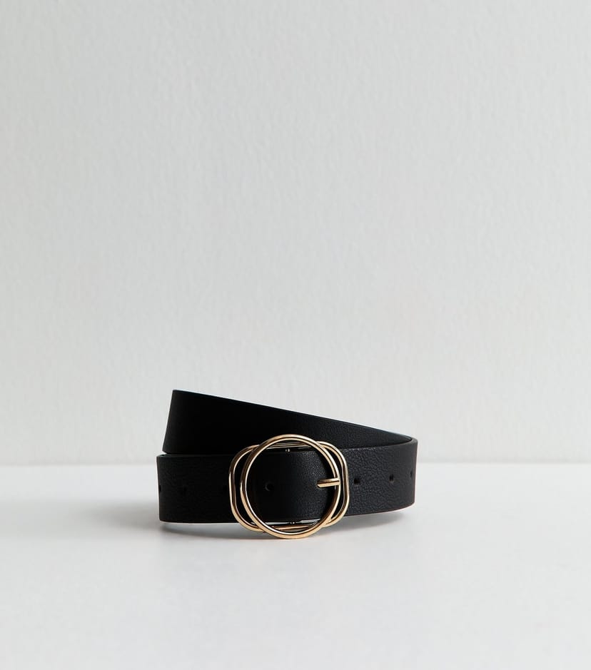The New Look Black Faux Leather Belt with Gold Buckles is ideal for casual, everyday.