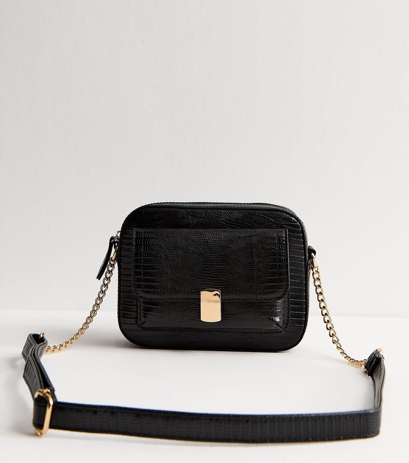 The New Look Black Faux Leather Crossbody Bag Vegan is available in sizes ONE SIZE.
