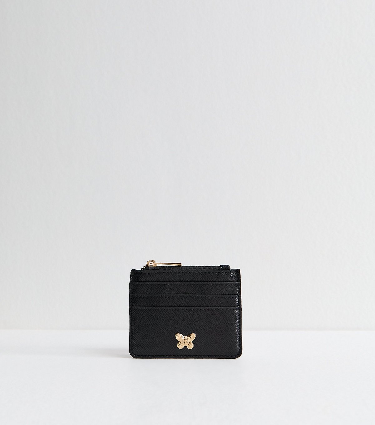 Compact and stylish, this black grained faux leather cardholder from New Look features a sleek butterfly detail and gold-tone hardware. Ideal for everyday use, it keeps your essentials organised with ease.
