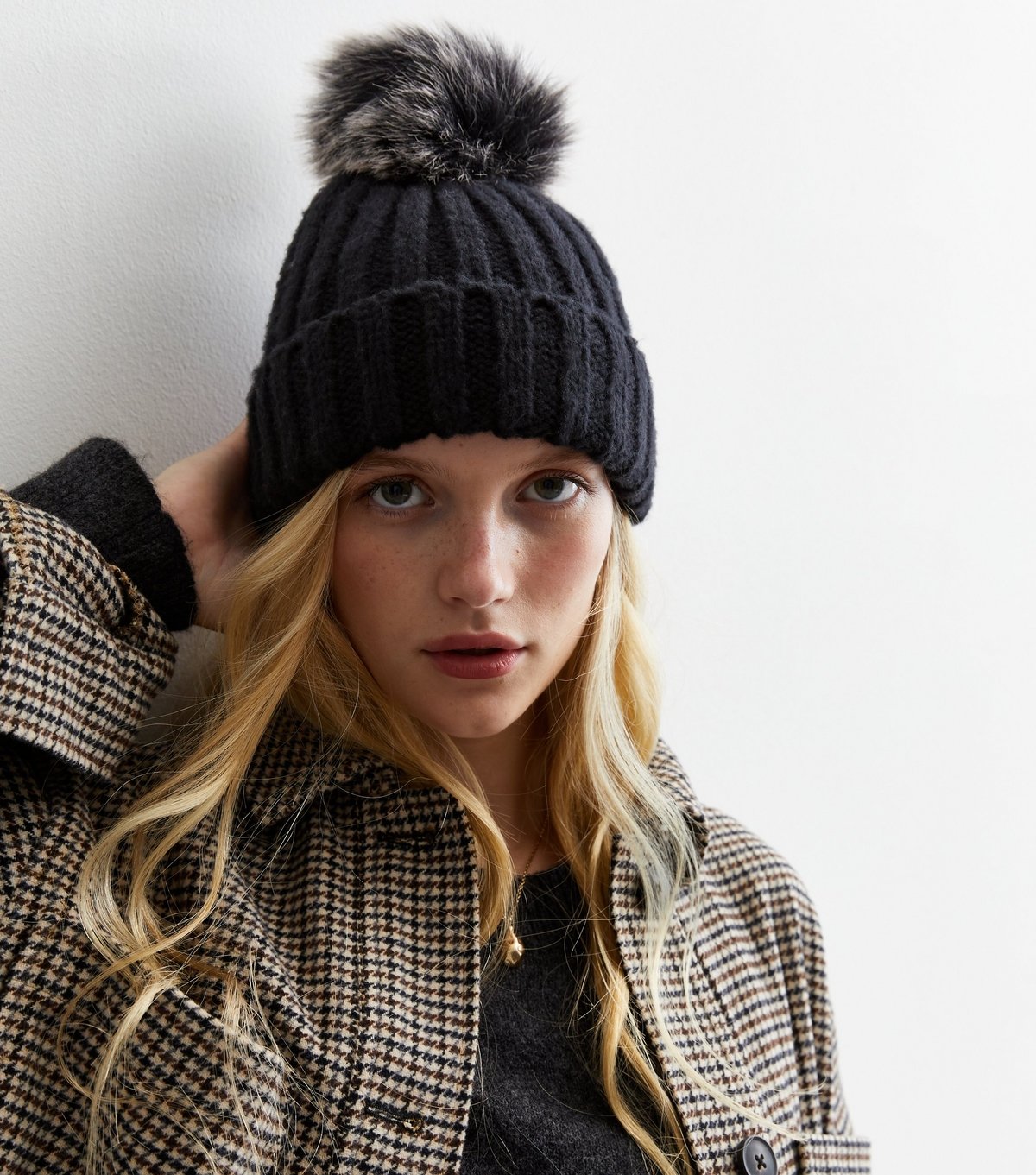 The New Look Black Knit Faux Fur Pom Pom Hat is ideal for casual, everyday, winter.