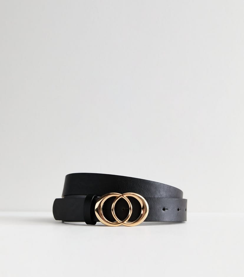 Stylish black leather-look buckle belt from New Look. Features a unique gold-tone buckle for a chic finishing touch. Made from artificial leather, this belt is perfect for elevating any outfit.