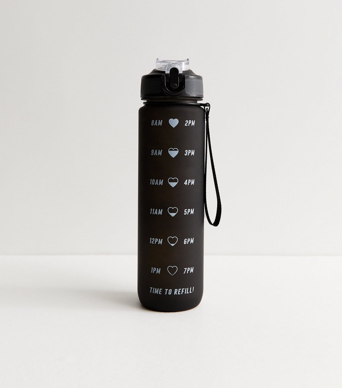 The New Look Black Pop Lid Straw Water Bottle is made from plastic, canvas.