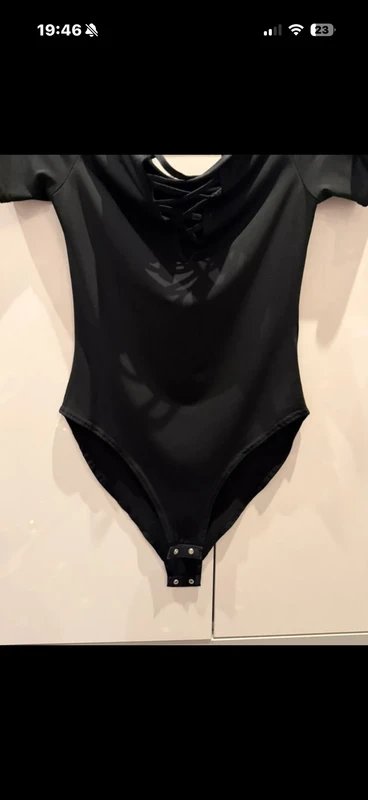 The New Look Black Bodysuit with Cross Detail is available in sizes S.