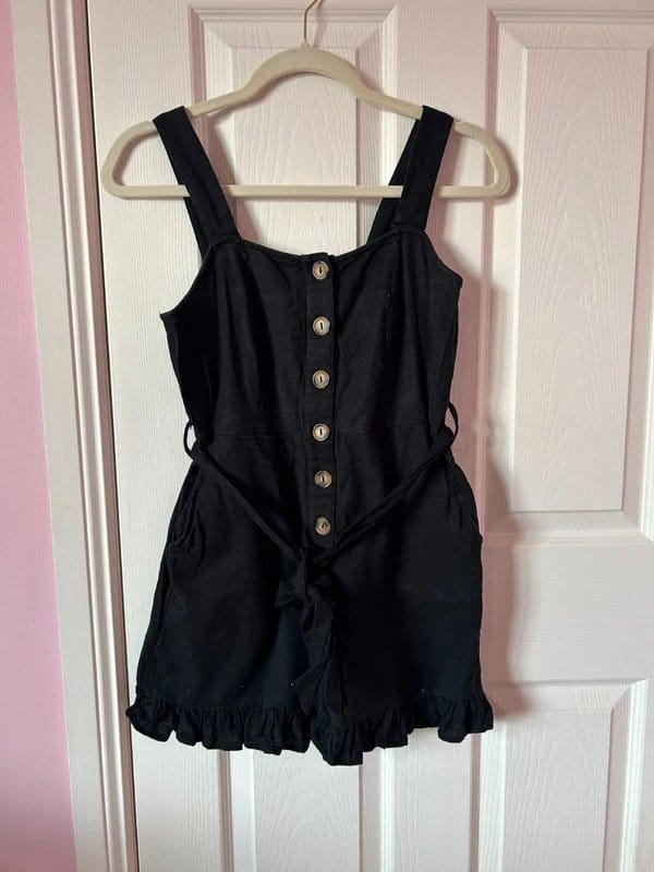 The New Look Black Button-Up Playsuit is available in sizes S.