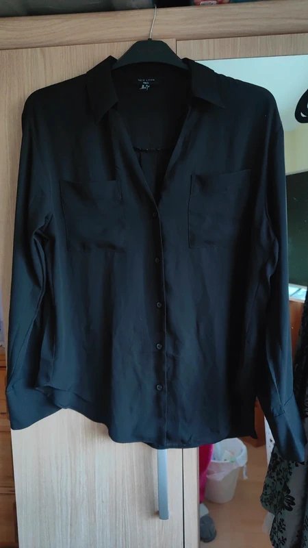 This elegant black chiffon New Look shirt features a button closure and is perfect for various occasions. The lightweight fabric adds a touch of sophistication.
