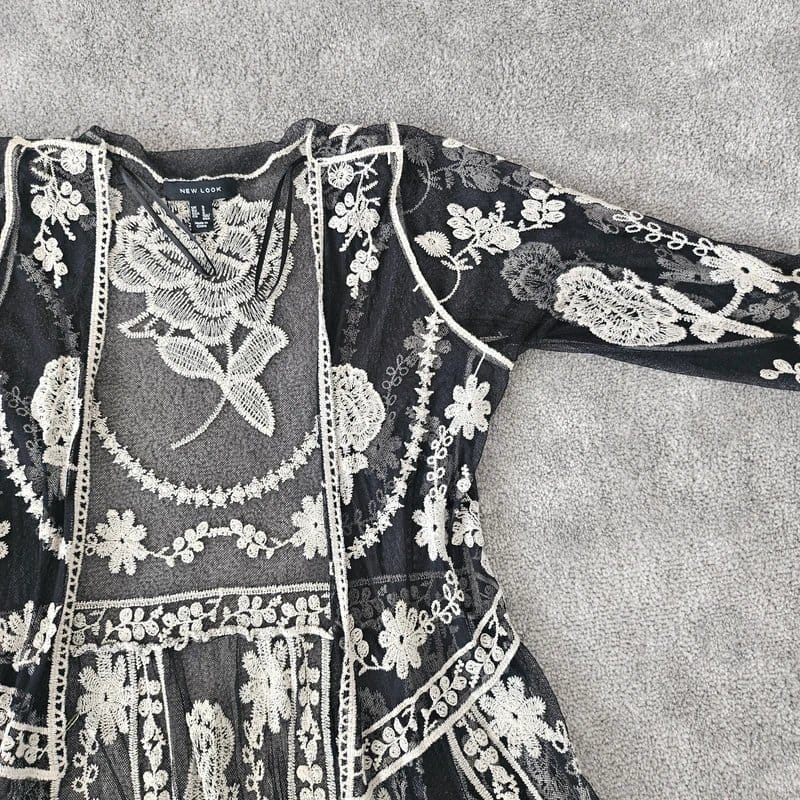 The New Look Floral Lace Cover Up in Black is available in sizes S.