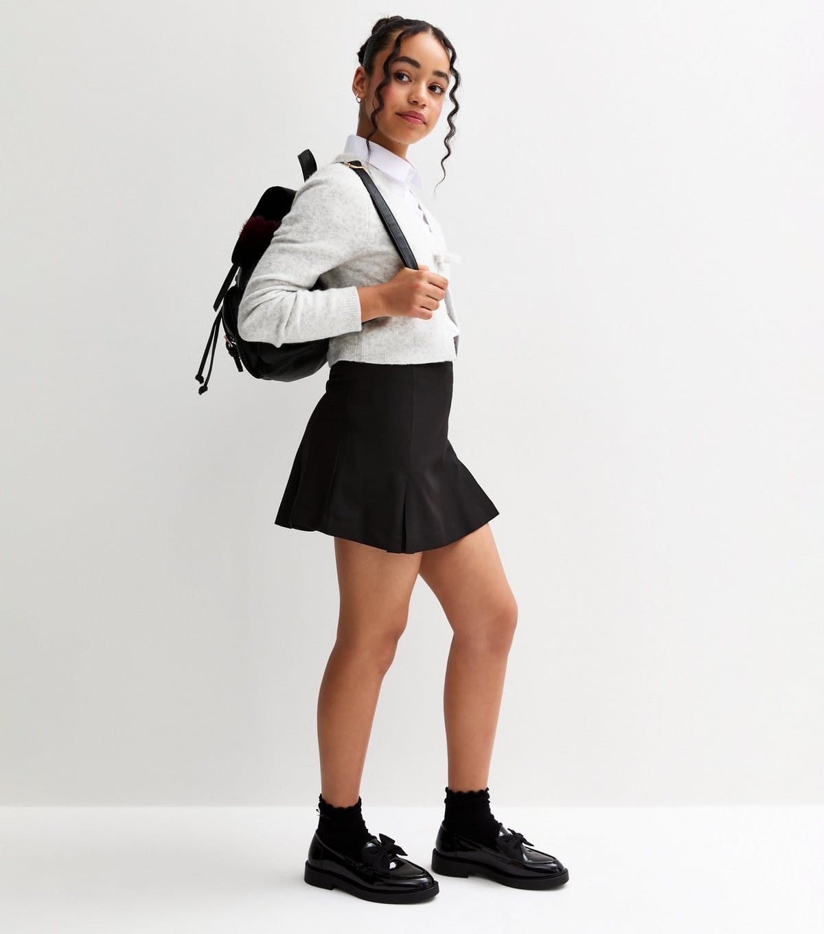 Pair with a white long-sleeve top and black boots for a smart school look.