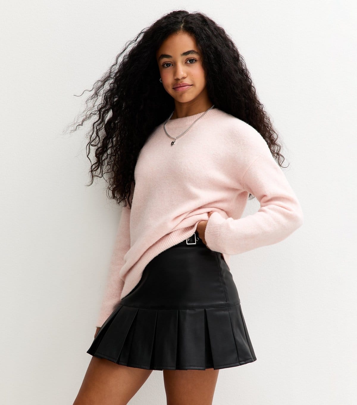 The New Look Black Faux Leather Pleated Skirt for Girls is ideal for casual, everyday.