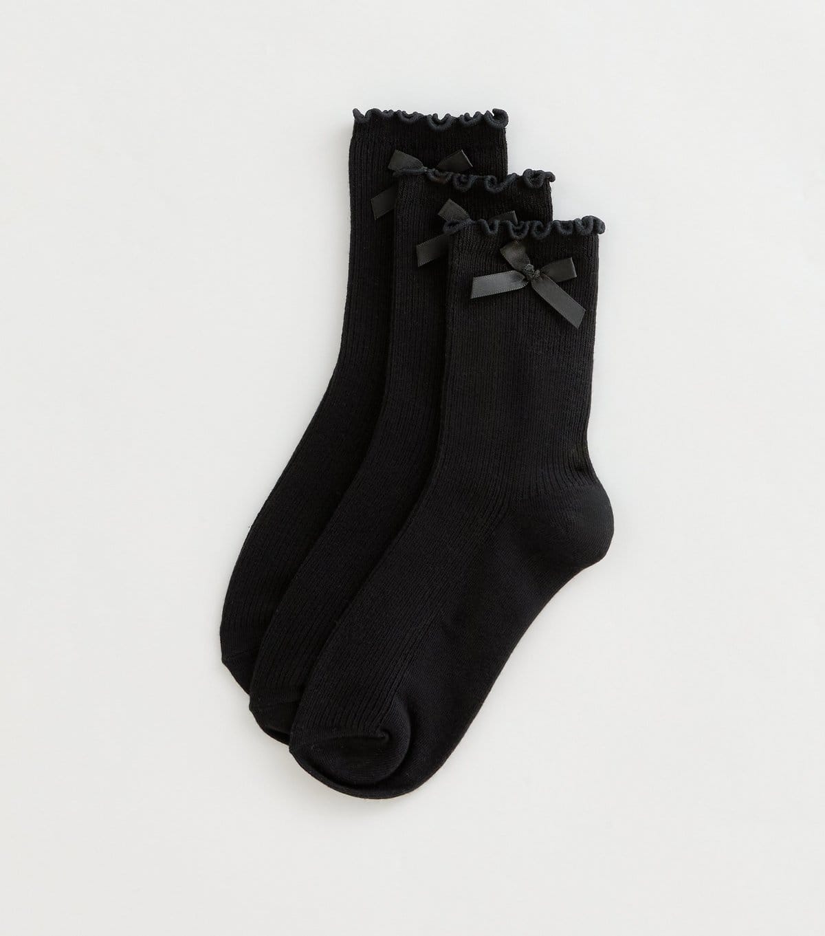 The New Look Black Ribbed Bow Trim Frill Socks is available in sizes one size.