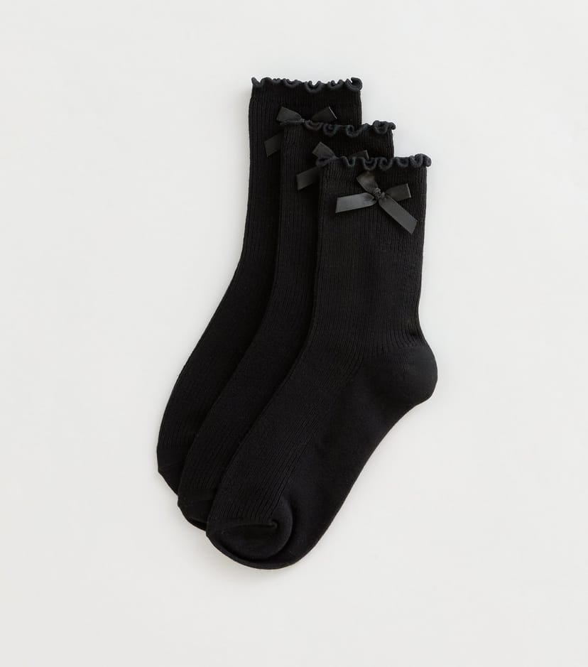 The New Look Black Ribbed Bow Trim Frill Socks is ideal for everyday, casual.