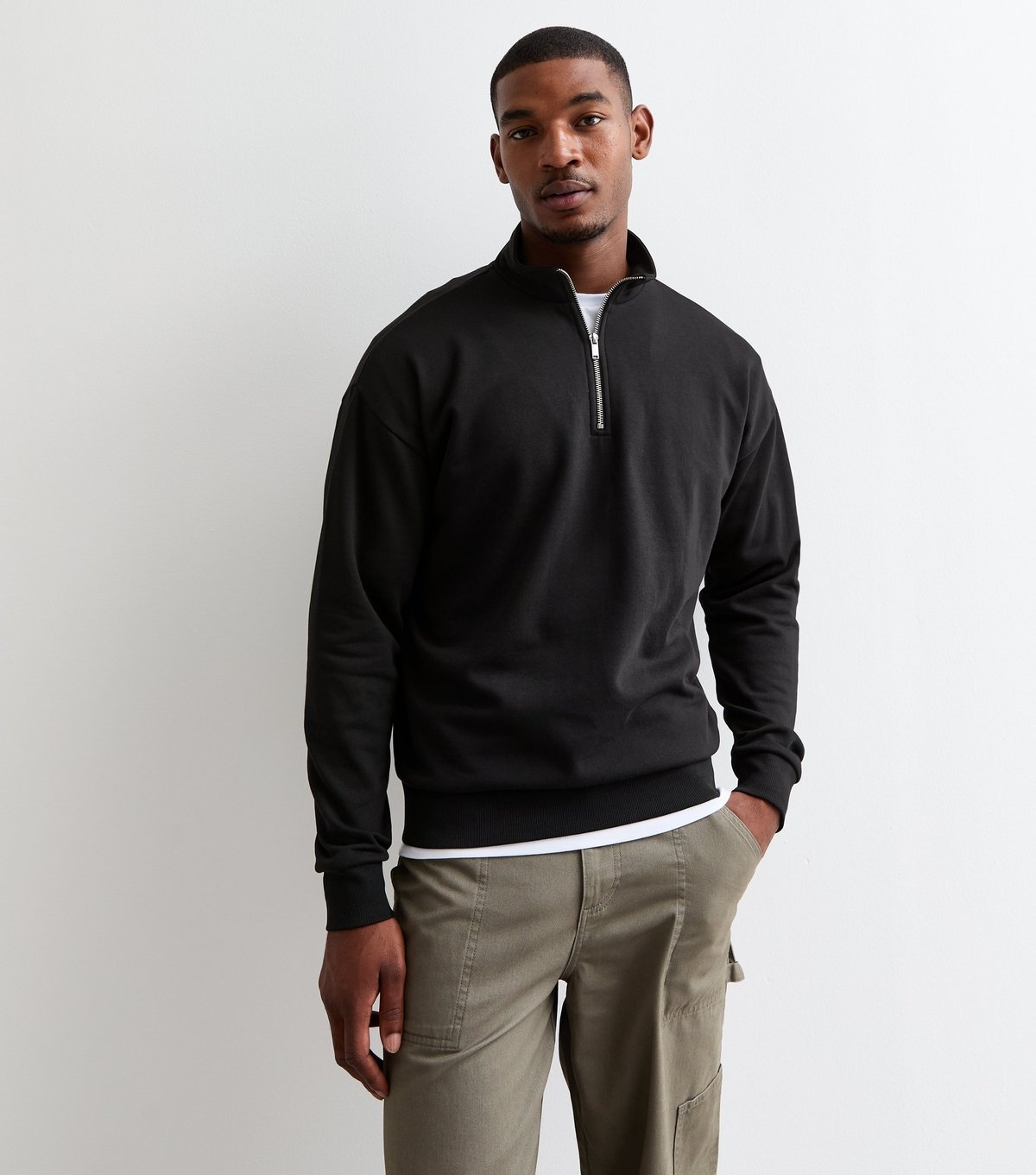 The New Look Black Cotton Blend Funnel Neck Sweatshirt is available in sizes L, XL.