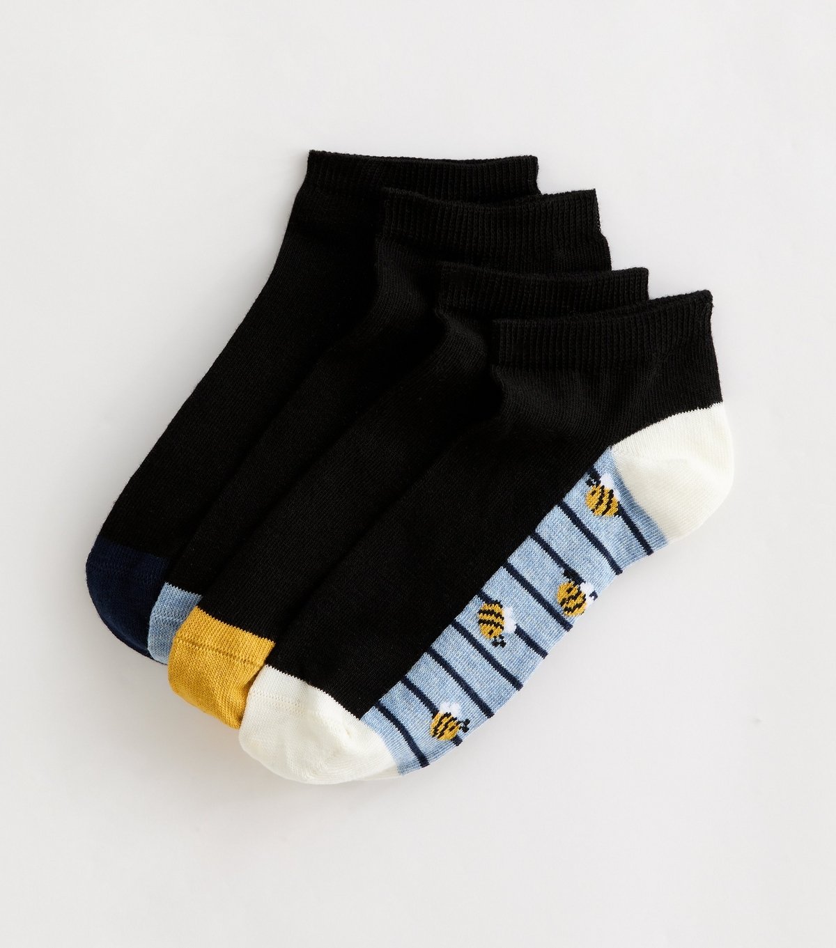 The New Look Black Bee and Floral Trainer Socks Pack of 4 is ideal for everyday, casual.