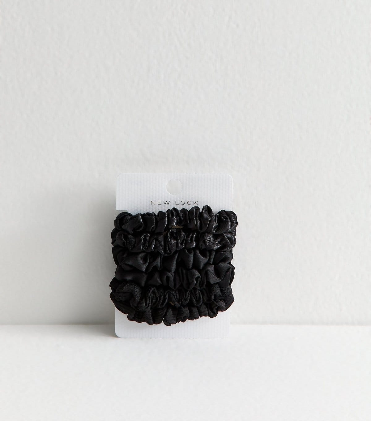 Pack of 6 black mini satin scrunchies from New Look. These scrunchies are designed in a mini scale from textured satin. Perfect for adding a touch of elegance to your hair.