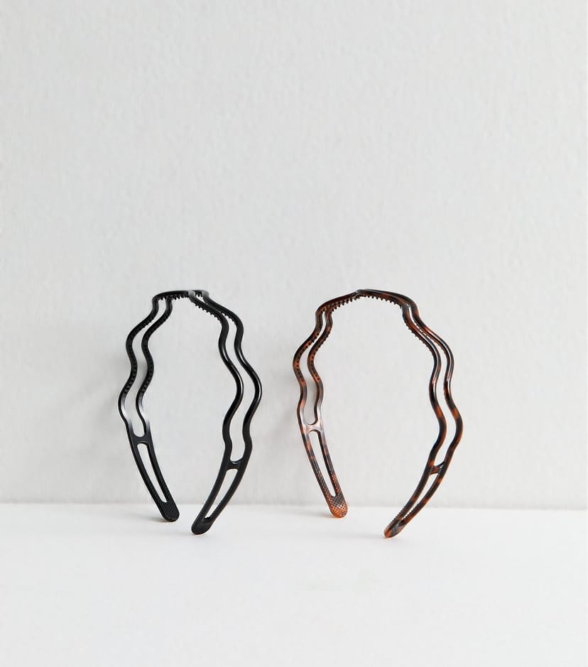 Instantly upgrade your everyday style with this pack of two black and tortoiseshell headbands. Ideal for taming fly aways on busy days, their wavy shape gives instant interest.