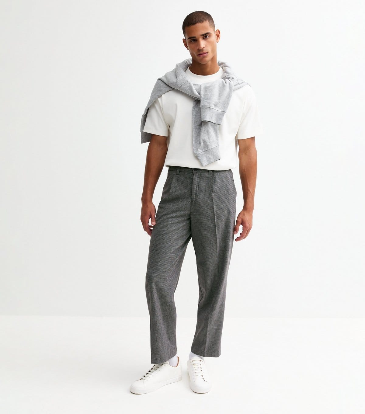 The New Look Black Checked Pleated Oversized Trousers is available in sizes 28r.