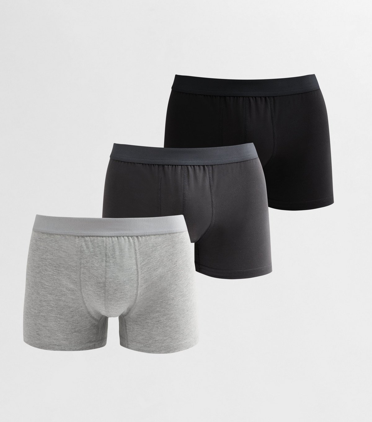 Refresh your underwear drawer with this pack of three boxers. Featuring an elasticated contrast waistband, these boxers are made from soft jersey for ultimate comfort. Available in black and grey.