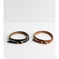 A pack of two belts from New Look in black and tan faux leather. Featuring gold hardware with a polished finish, these belts are perfect for adding a touch of elegance to any outfit.