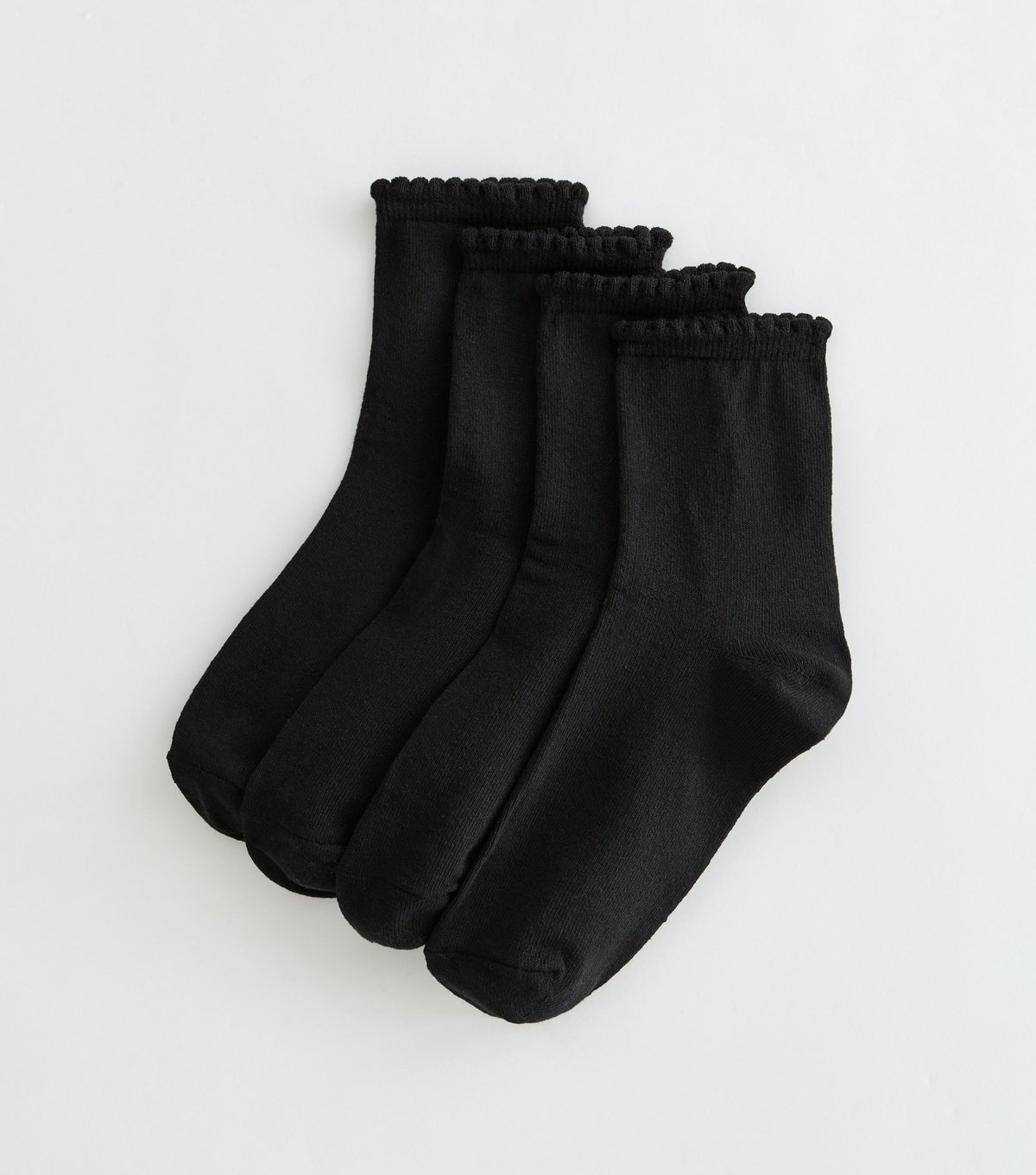 The New Look Black Scallop Top Ankle Socks Pack of 4 is available in sizes ONE SIZE.
