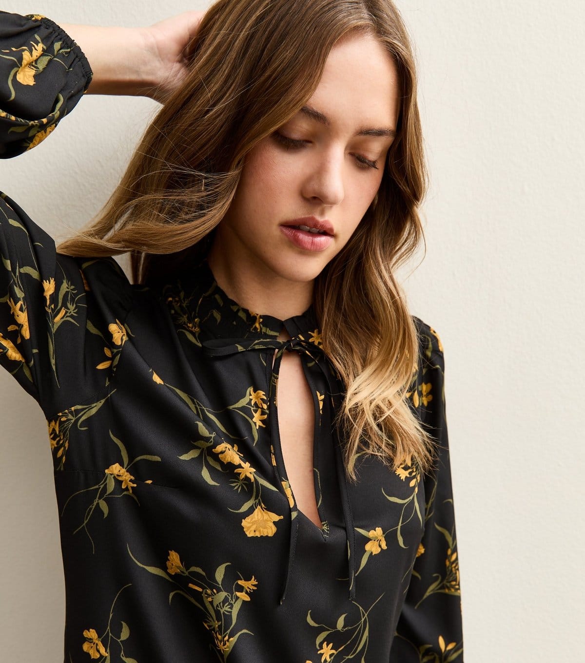 The New Look Black Floral Crepe Smock Blouse is ideal for casual, everyday, date-night.