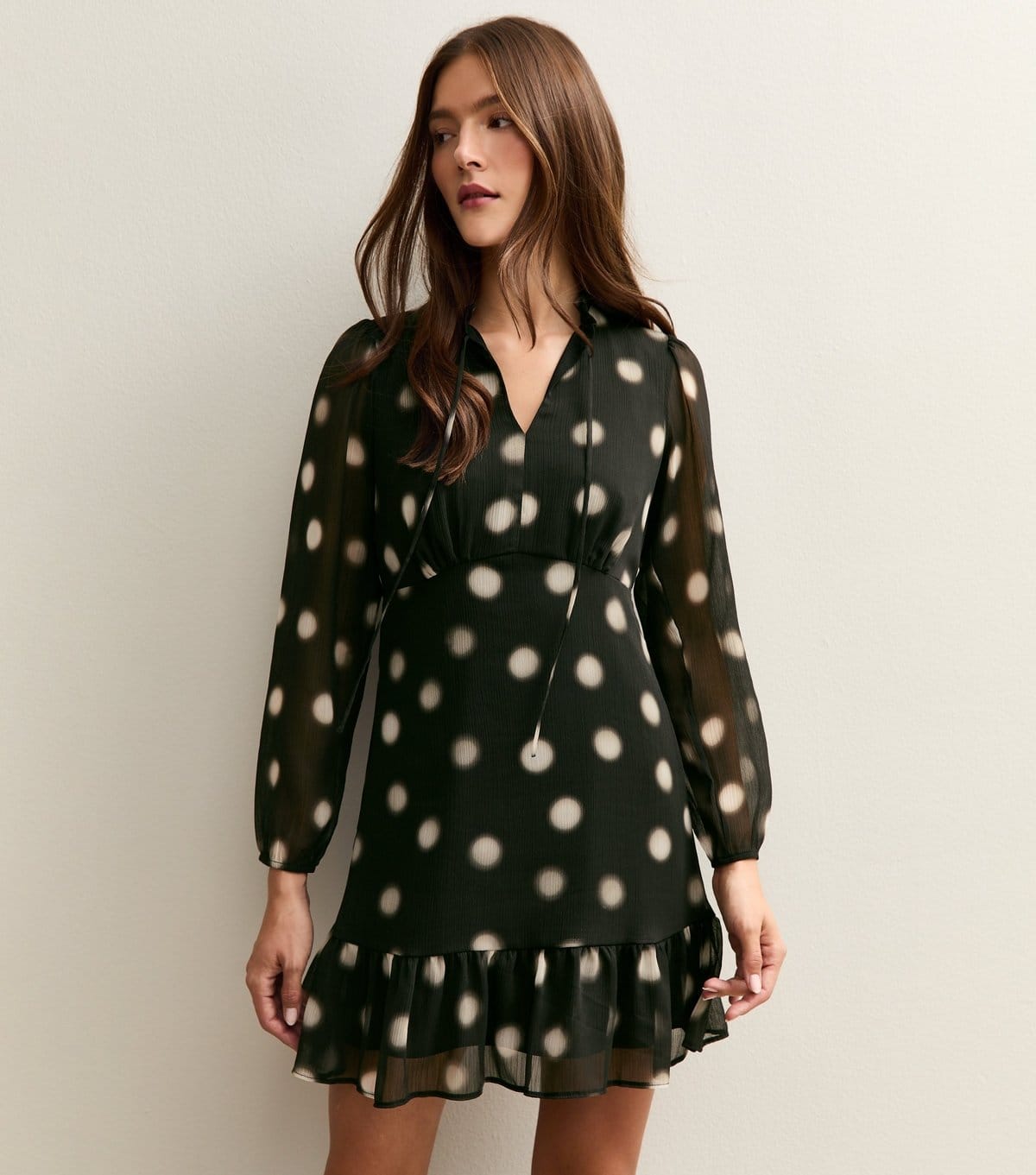 The New Look Black Polka Dot Chiffon Mini Dress is made from chiffon.
