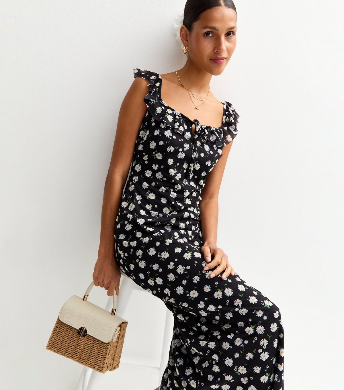 The New Look Black Daisy Print Midi Dress is ideal for casual, day-to-night, evening.