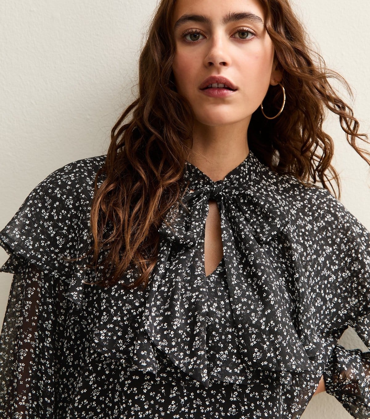 The New Look Black Ditsy Floral Print Tie Neck Blouse is made from chiffon.