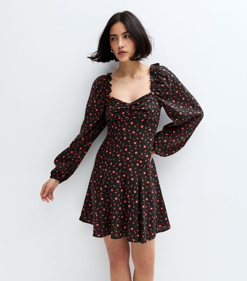 The New Look Black Floral Print Sweetheart Neck Mini Dress is ideal for lunch dates, city outings, casual.