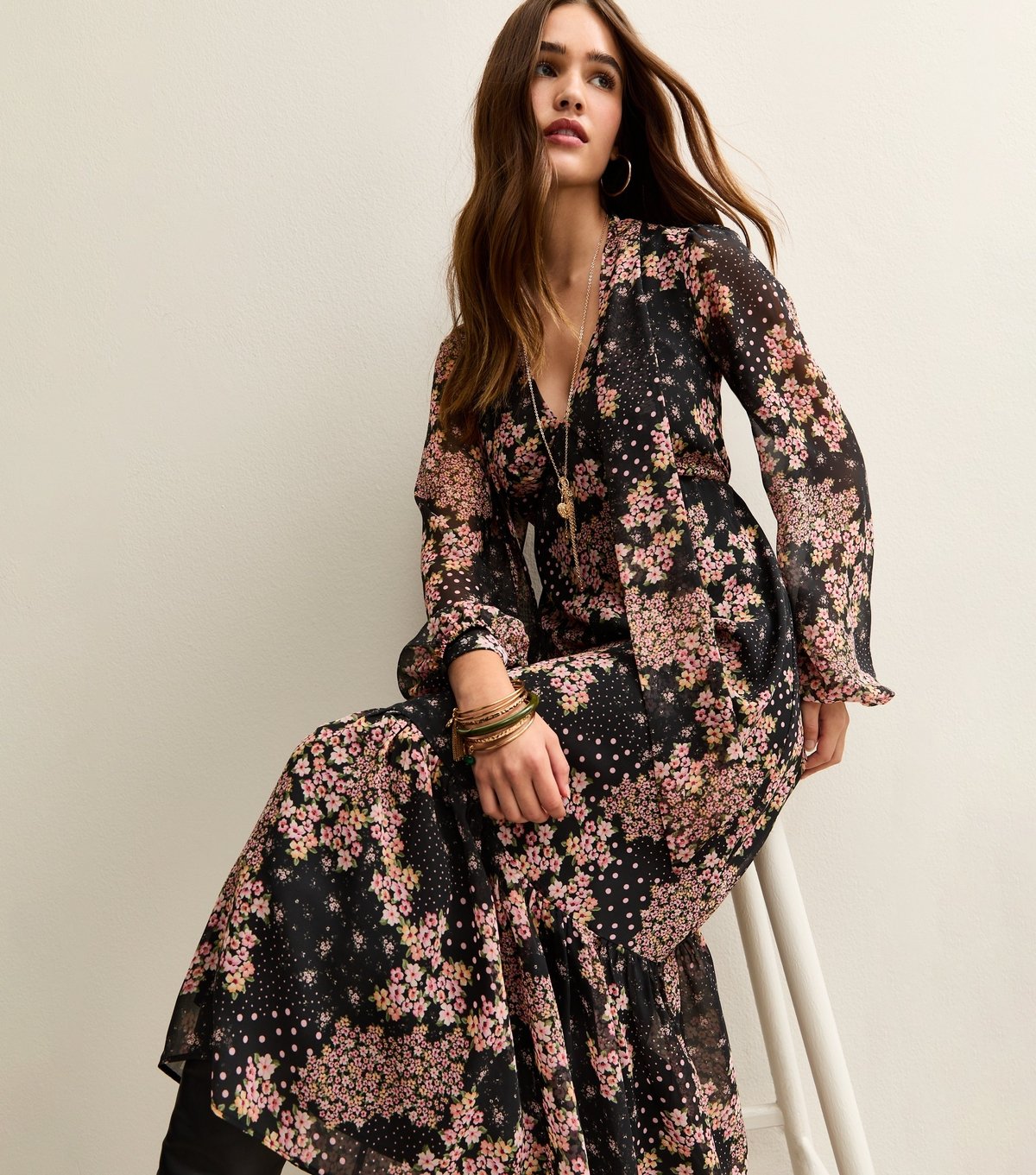 The New Look Black Floral Print Chiffon Midi Dress is made from chiffon.