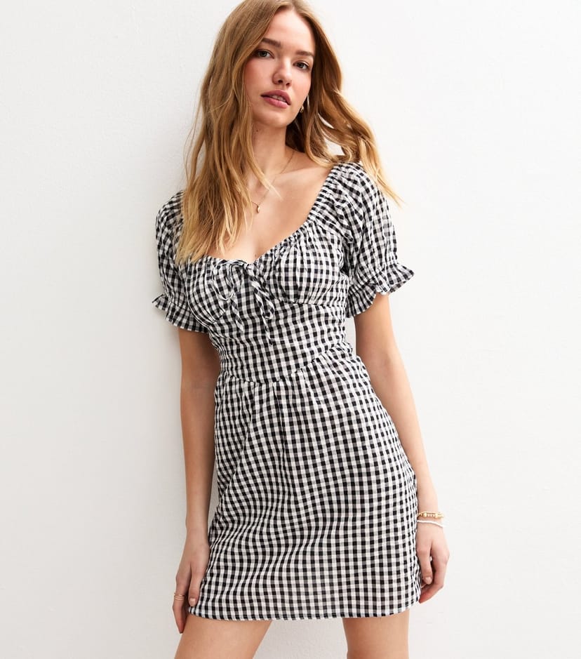 The New Look Black Gingham Print Puff Sleeve Mini Dress is ideal for casual, beach, picnic.