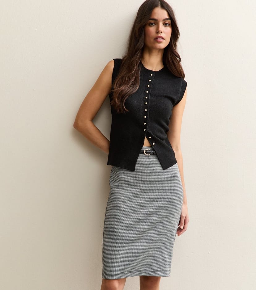 The New Look Black/White Houndstooth Belted Pencil Skirt is made from jacquard, jersey.