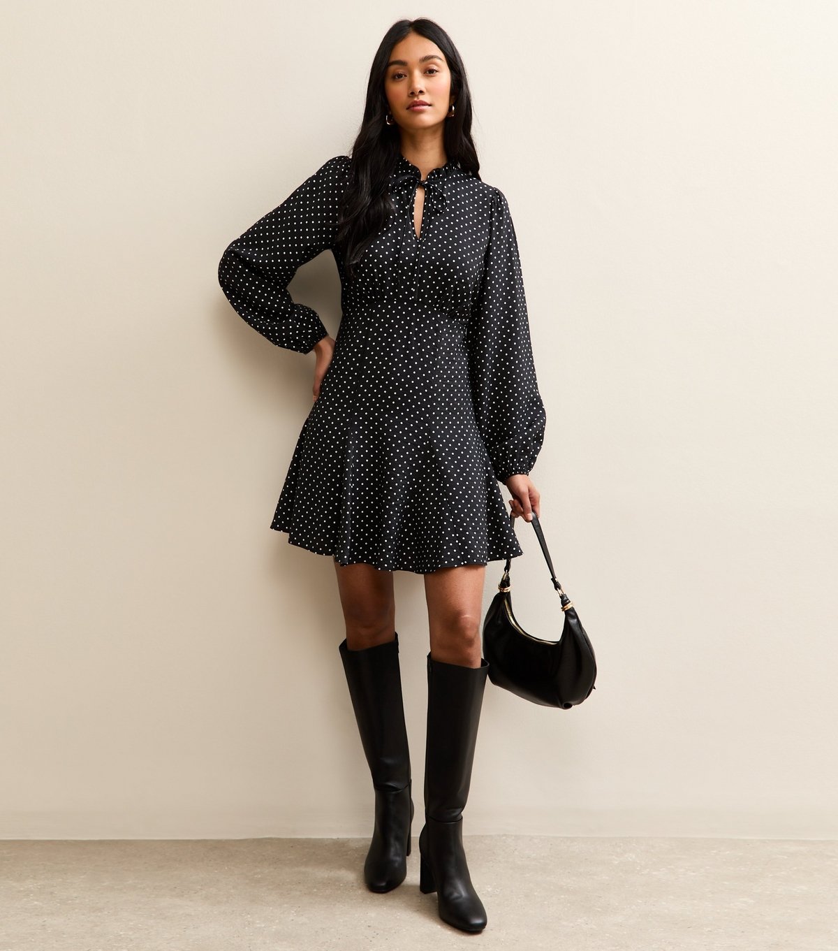 The New Look Black Polka Dot Keyhole Midi Dress is made from woven.