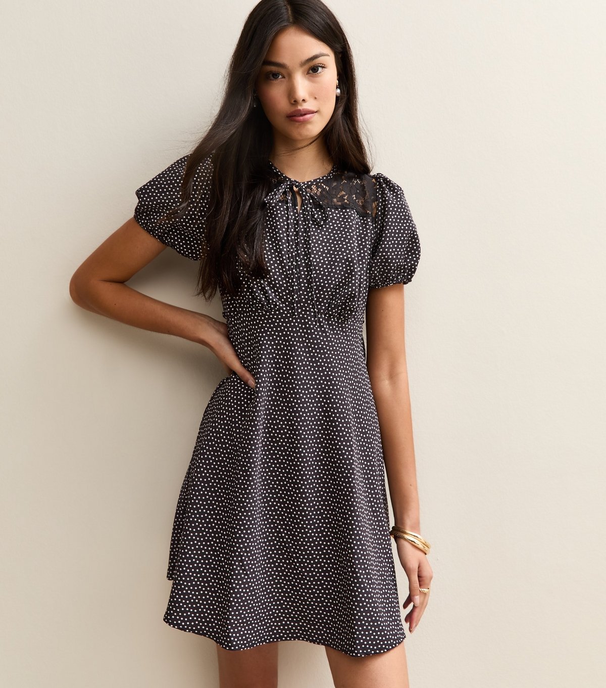 The New Look Black Polka Dot Puff Sleeve Mini Dress is ideal for casual, night out.