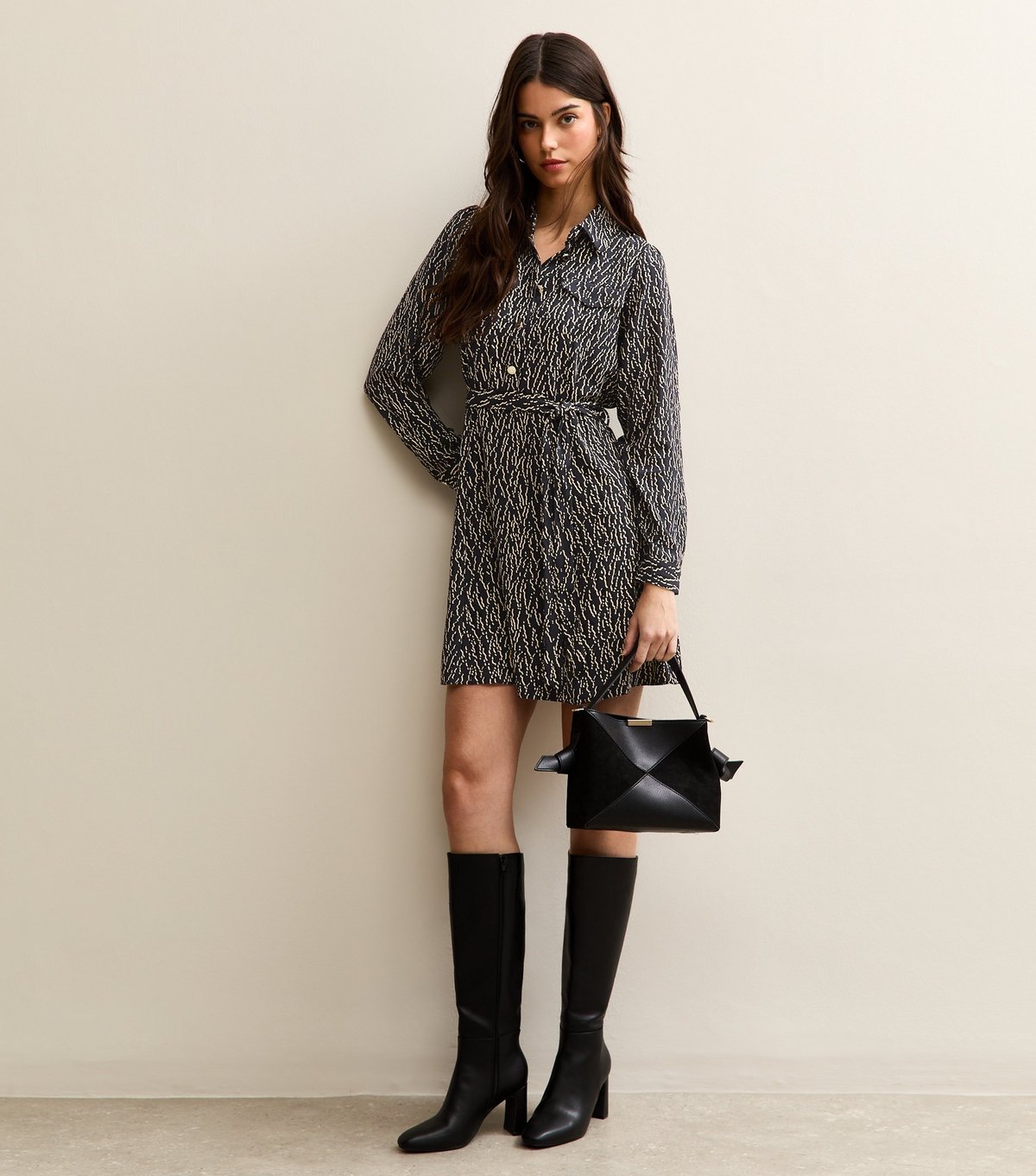 The New Look Black Squiggle Print Mini Shirt Dress is made from woven.