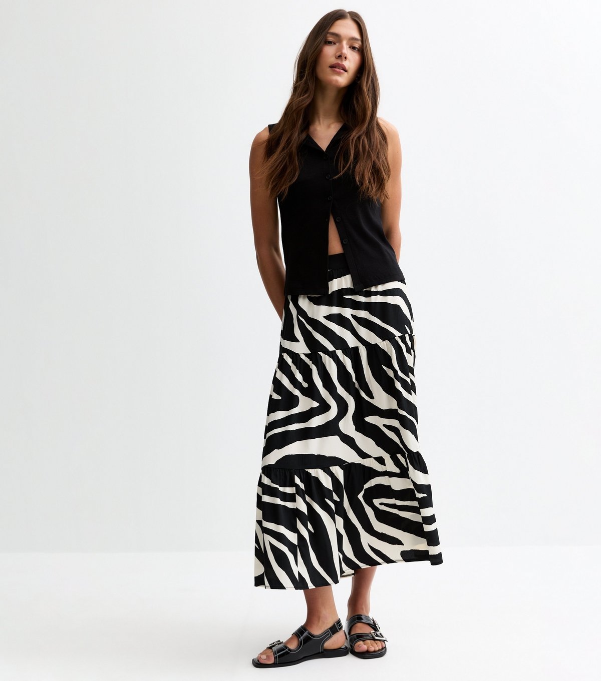 The New Look Black Zebra Print Midi Skirt is made from crepe.